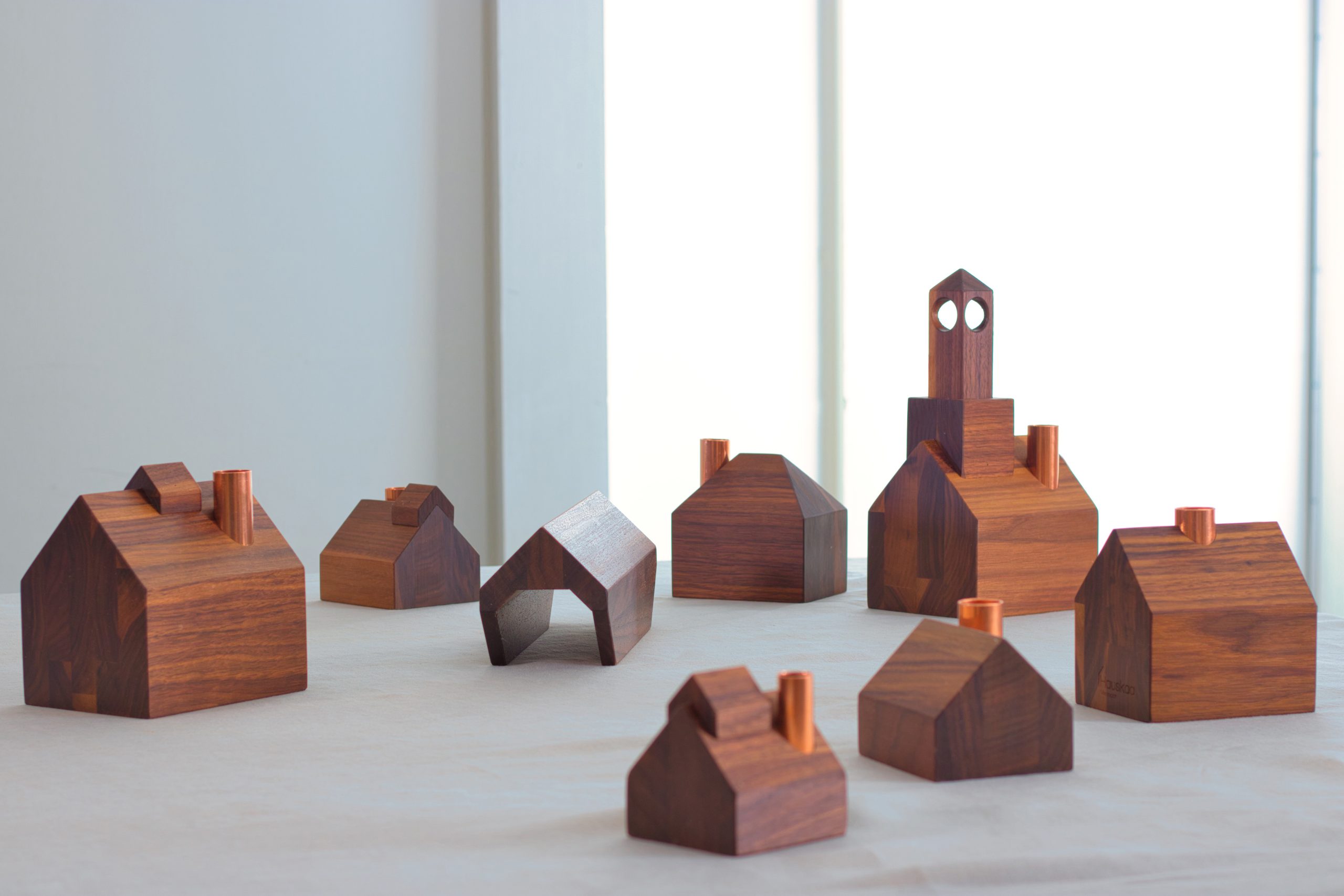 This wooden village set features eight minimalist, Nordic-designed little wooden village houses that double as candlestick holders, allowing you to create endless display combinations. Every house is topped with a twinkling copper chimney, adding a touch of magic to your modern decor.