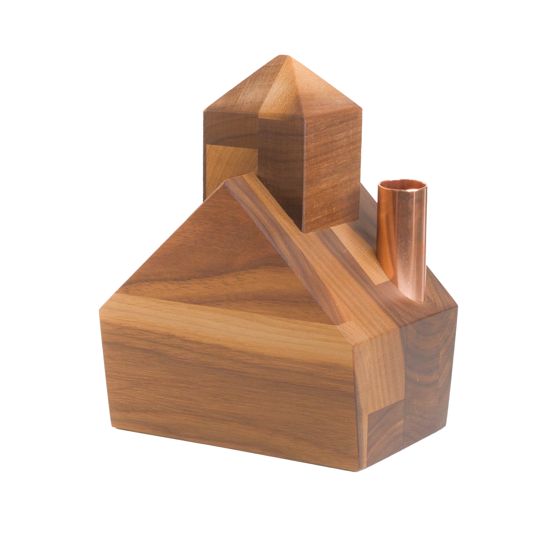 This delightful piece features angled, tapered walls and a cube-shaped steeple reminiscent of retro church architecture. Crafted with meticulous attention to detail, it includes a copper chimney that adds a warm glow to any space. The little wooden church design is ideal for fans of retro home decor or those simply looking for a unique candlestick holder.