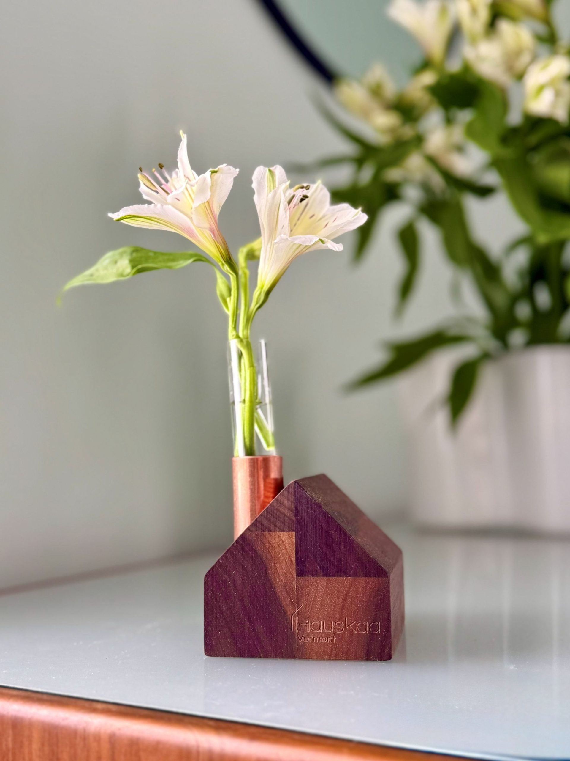 With the addition of the glass bud vase, your Hauskaa pieces can be enjoyed year-round—simply change the stems with the seasons. Add spring blossoms, summer herbs, autumn grasses, or winter greenery to bring a natural, ever-changing element to your home.
