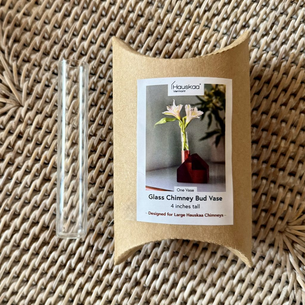 Add a fresh, natural touch to your Hauskaa décor with the Glass Chimney Bud Vase, designed to fit perfectly inside large Hauskaa chimneys. This slender glass insert transforms your handcrafted wooden homes into charming Nordic-inspired centerpieces, ideal for displaying a single flower, wildflower stem, or sprig of greenery.
