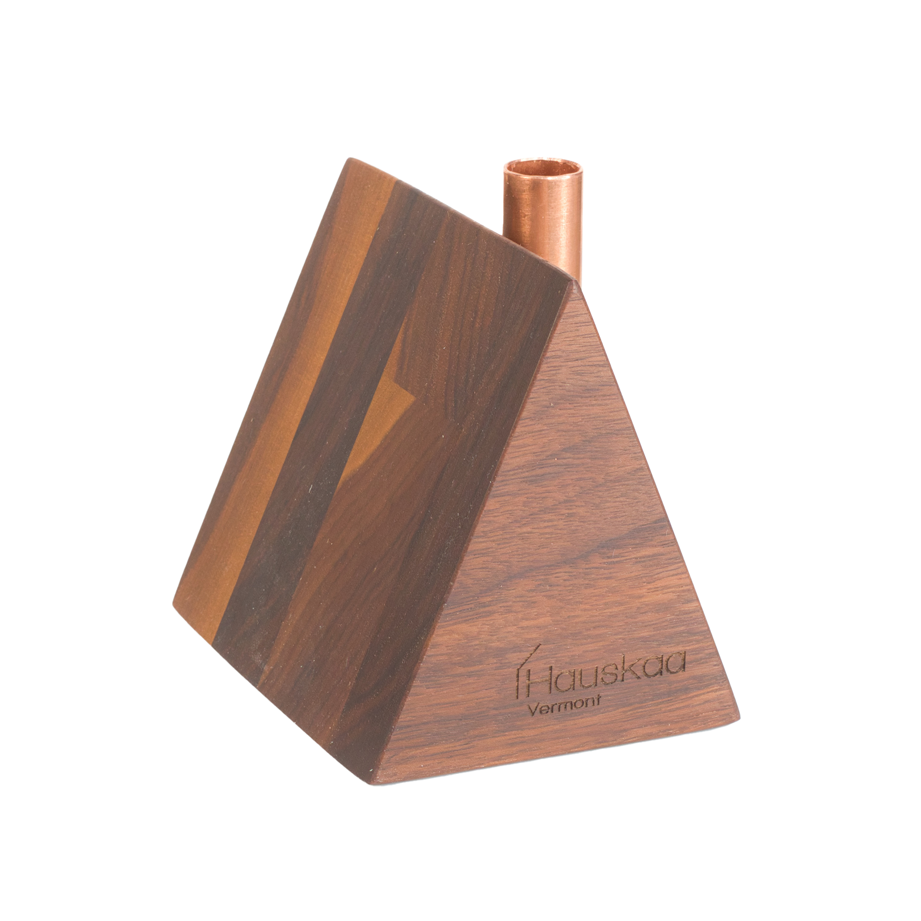 This thoughtfully crafted house captures the essence of retro home decor, evoking daydreams of outdoor adventures, cozy retreats, and artistic living. Whether you’re decorating an A-frame cabin of your own, or simply seeking to infuse your space with a casual, laid-back vibe, this wooden house is a must-have. Featuring a copper chimney candlestick holder to create a warm and inviting ambiance.